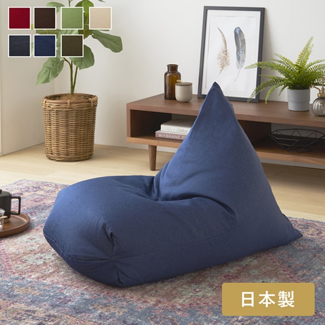 背もたれ付きのビーズクッションです。 ◆たっぷりビーズがしっかりフィット ビーズ一粒一粒が、座った瞬間に身体にフィット。しっかりとした座り心地です。 ◆しっかり身体を包み込むデザイン 背もたれがあるので、しっかりと身体をホールドしてくれます。ソファのようにしっかり座ったりそのまま頭を預けてお昼寝も。 ◆独自の極小ビーズでへたりにくく 一般的なビーズは約2~3mmが多いですが、それよりも小さい極小ビーズを採用。へたりにくく、もっちりとした座り心地が魅力のソファです。 ◆撥水加工の生地でお手入れ簡単 水がこぼれてもサッと拭けるので、お子さまがいるご家庭にもおすすめです。 ◆2重ファスナーのしっかり品質 ファスナーはビーズがこぼれにくい2重仕様です。 商品詳細 サイズ・容量 【製品サイズ・重量】 (約)幅62x奥行78x高さ58cm・2.2kg 座面高 26cm 【梱包サイズ・重量】 (約)幅63x奥行55x高さ42cm・3.4kg 規格 【材質】 中材:発泡ビーズ(ポリエチレン) 側生地:ポリエステル49%、綿51%(撥水加工) 【カラー】 ・ネイビー ・カーキ ・インディゴ 【生産国】 日本 注意事項 ※沖縄県・離島へのお届けは、全商品発送出来かねます。 ご注文いただいた場合はキャンセル処理させていただきます。 【商品に関するご注意】 ・サイズ・重量は概算です。 ・開封直後にまれに臭いが気になることがありますが、その際には風通しの良いところで陰干ししてください。 ・カバーは洗濯できません。汚れた場合は濡れたタオル等で軽くたたきながら汚れを落としてください。 ・こたつに使用する際は過度な高温は避け、長時間のご使用はお控え下さい。 ・通常使用時はファスナーの開閉はお控え下さい。 ・写真の色調はモニターの機種や設定により実際の商品と異なる場合があります。 10005