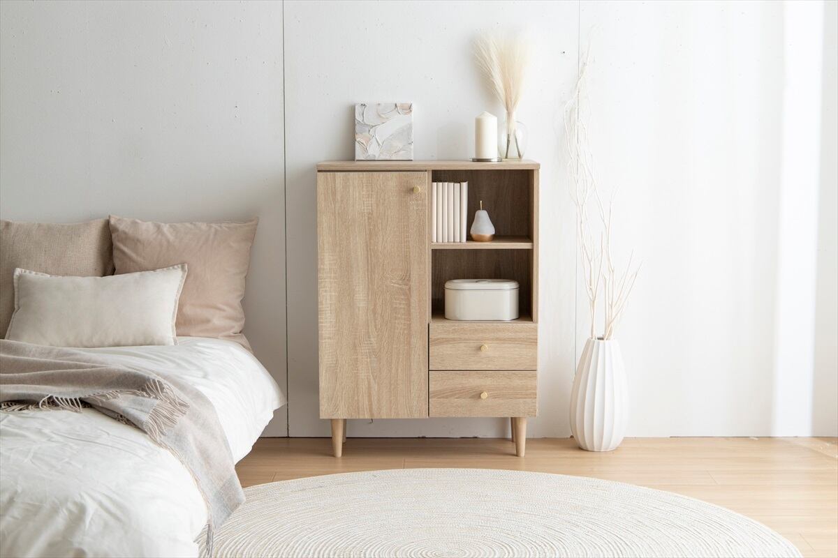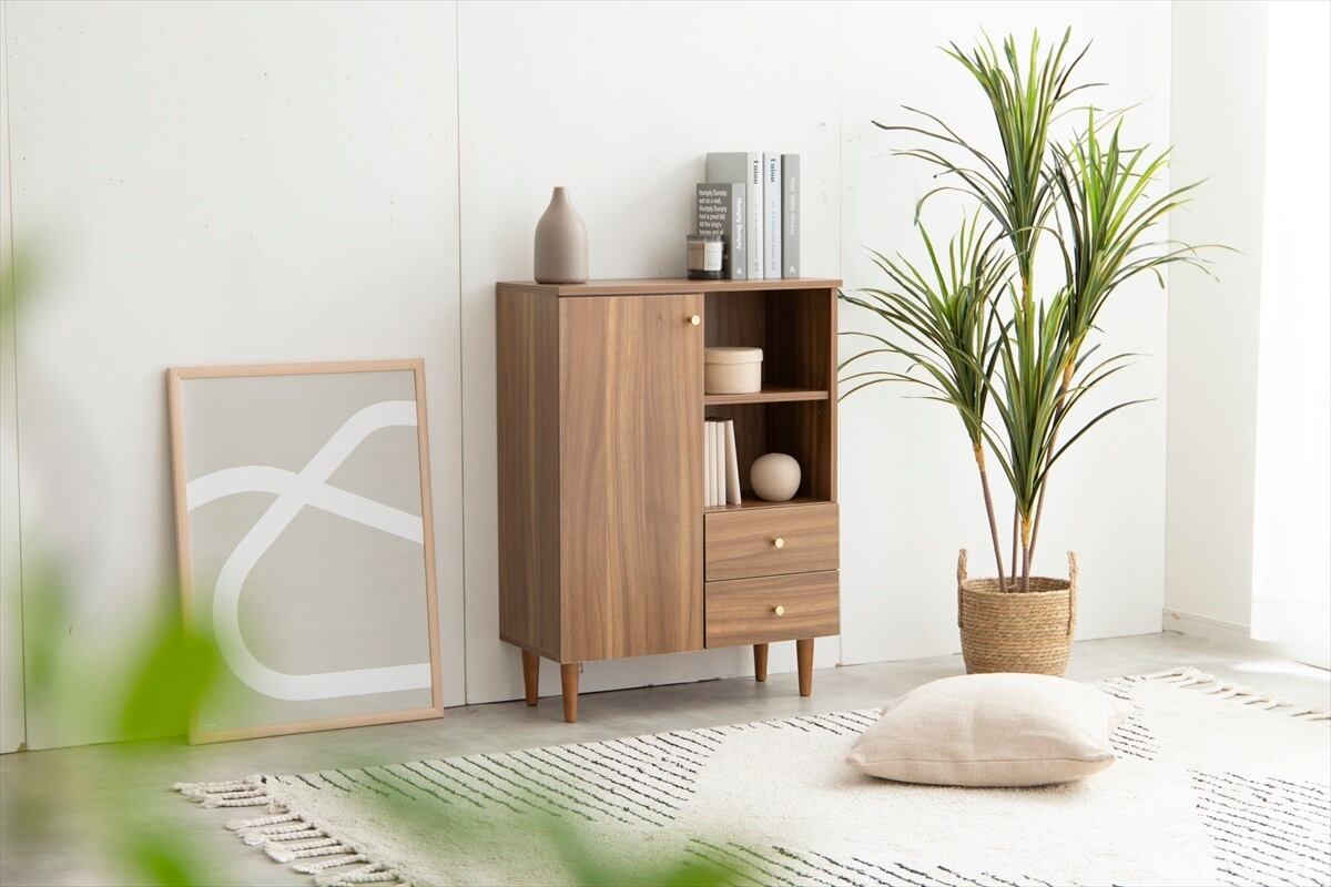 コンパクトさと収納力を両立した『Lucas(リュカ)』シリーズの脚付きキャビネット