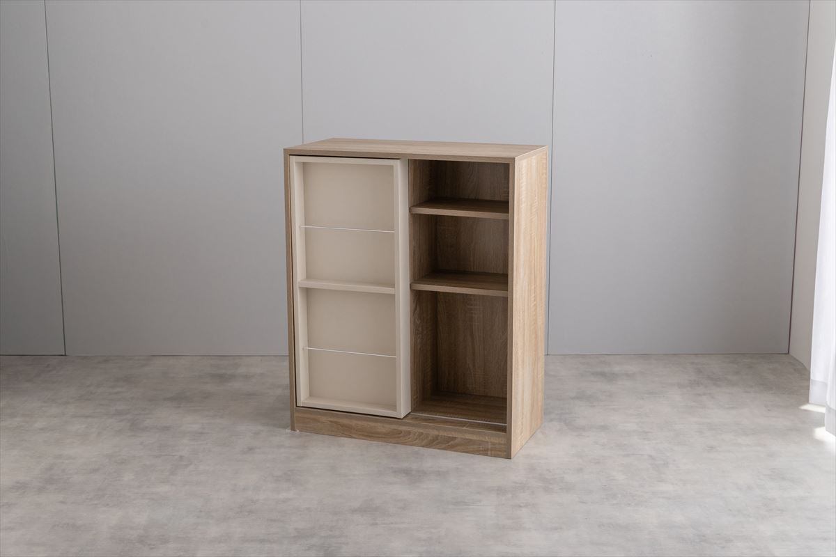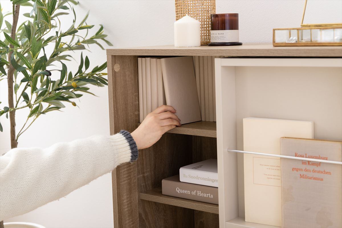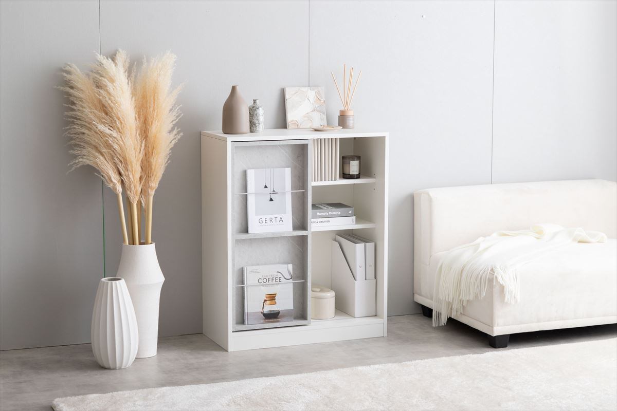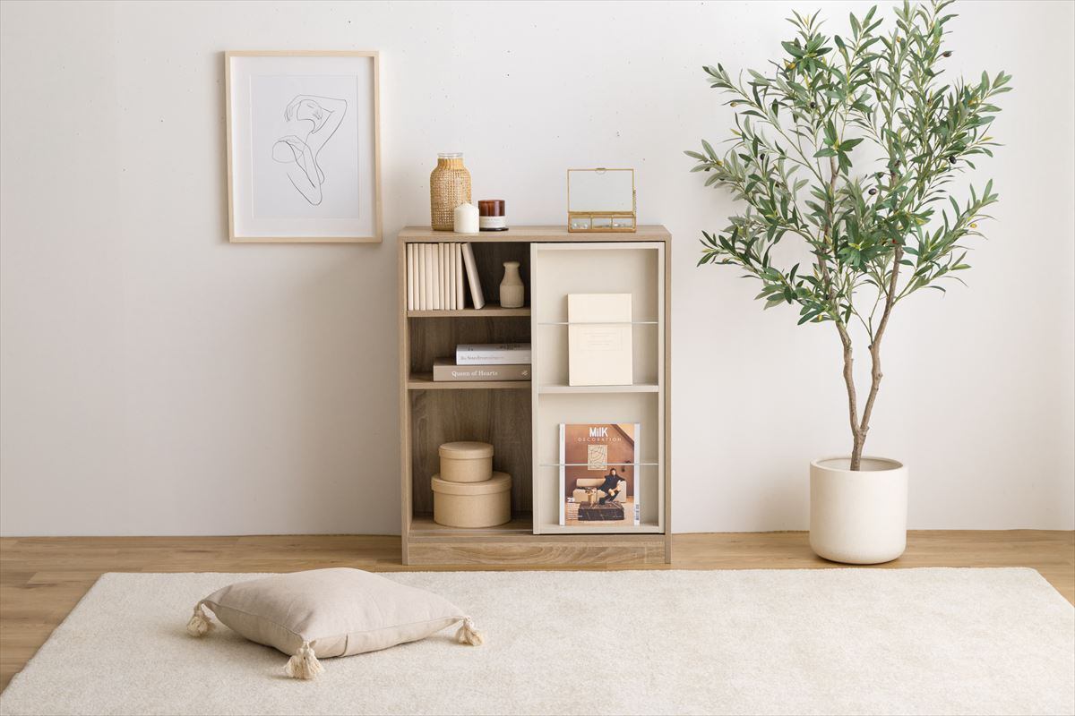 左右に動かすスライド棚で「隠す」と「見せる」が両立できる『Mysa(ミーサ)』スライド収納付き本棚ラック