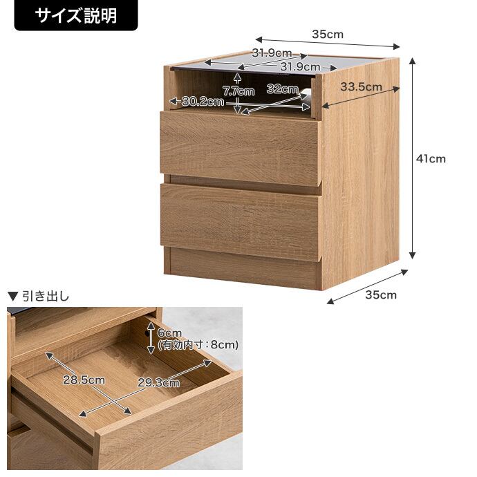 【耐荷重】天板:約3kg 、オープン収納スペース:約5kg、引き出し底板:約3kg