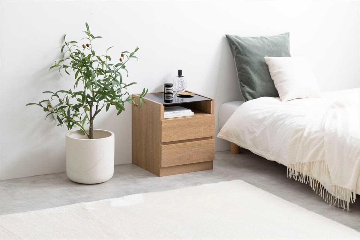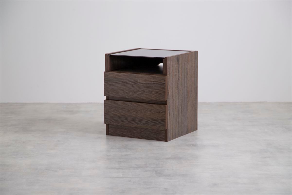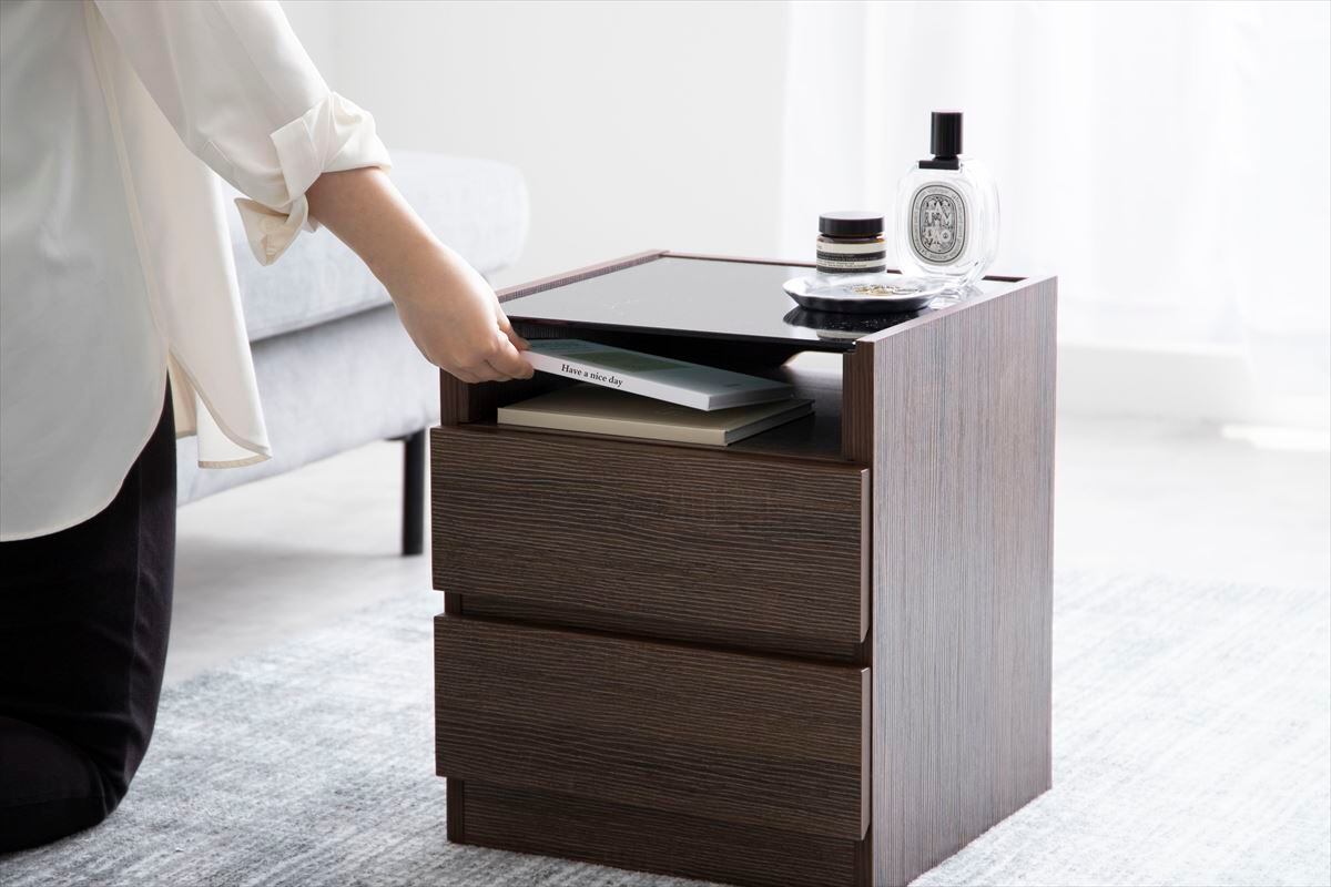 できる限り凹凸を無くしたフラットな外観が、スタイリッシュで美しい『Connie(コニー)』ナイトテーブル