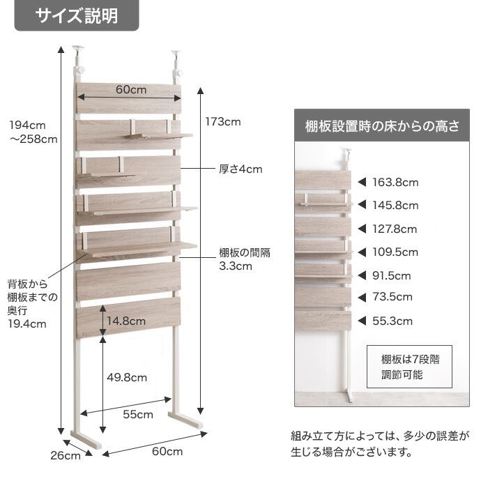 幅60cm×奥行26cm×高さ194〜258cm