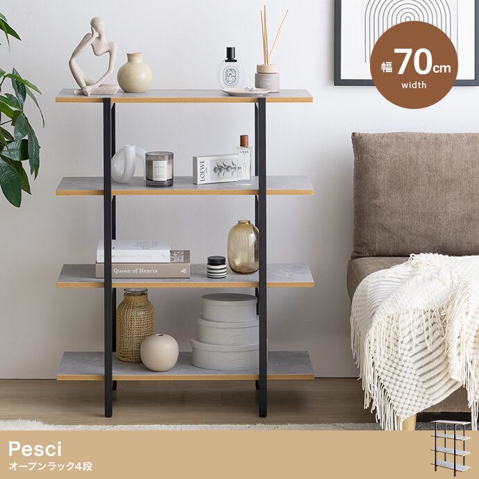 木目調とストーン調の組み合わせがおしゃれに演出する『Pesci(ペッシ)』シリーズのオープンラック