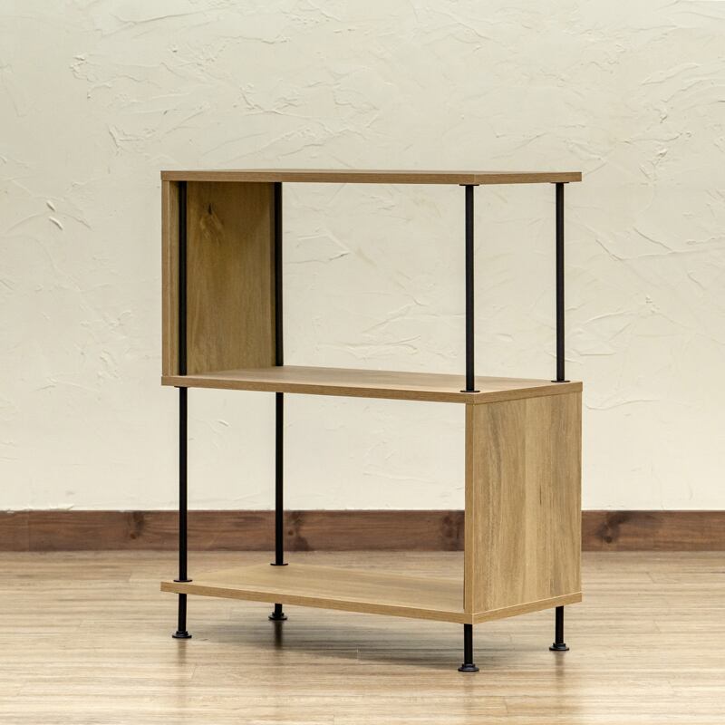 スリムなスチールフレームとヴィンテージテイストの木目調天板を組み合わせた、風通しがよく「見せる収納」を楽しむことができるオープンラック