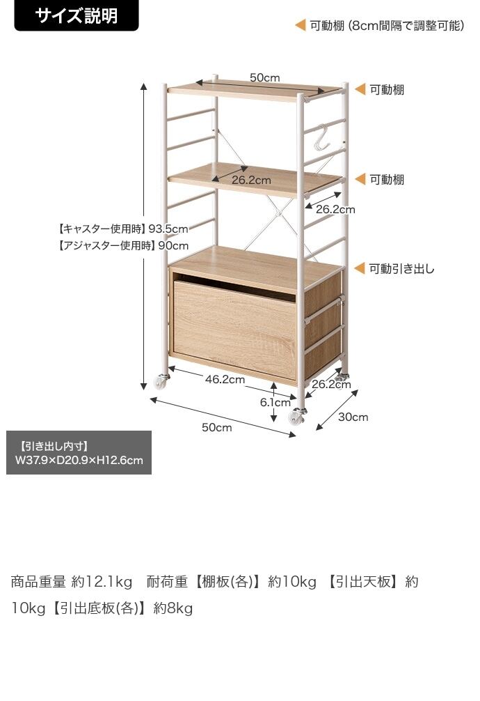 【耐荷重】棚板(各):約10kg、引出天板:約10kg、引出底板(各):約8kg