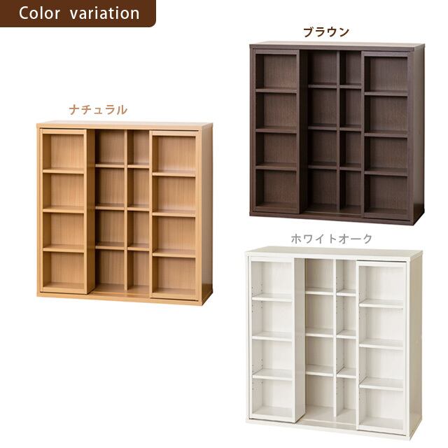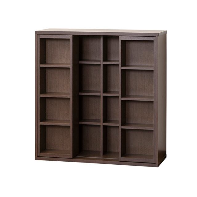 ◆前面・後面に分かれて収納できる、前面スライド式本棚です。