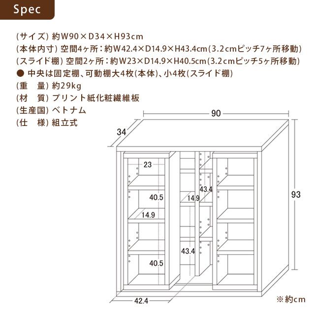 【商品サイズ】約 横90×奥行34×高さ93cm
