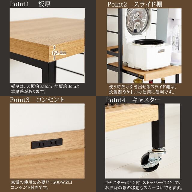 ◆通気性が良いオープン仕様で収納物が分かりやすく、キッチン家電の収納に便利です。