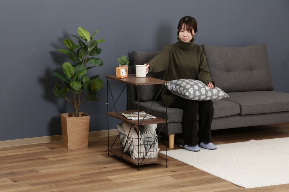 ソファ横などに置けばサイドテーブルとしてもお使いいただけます。