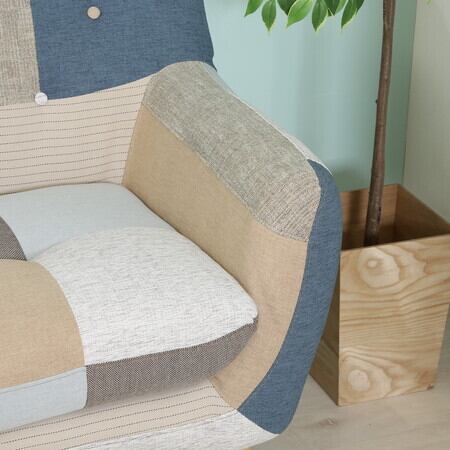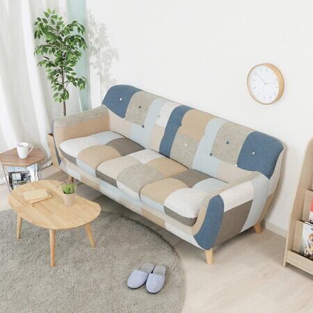 パッチワークが目を引くおしゃれな3人掛けソファ