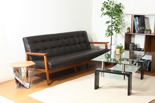 合成皮革と天然木を組み合わせたレトロでオシャレなデザインです。