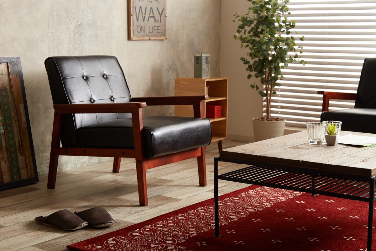 材質:天然木/ウレタンフォーム/ウェービングベルト、張り地/バイキャストPUレザー