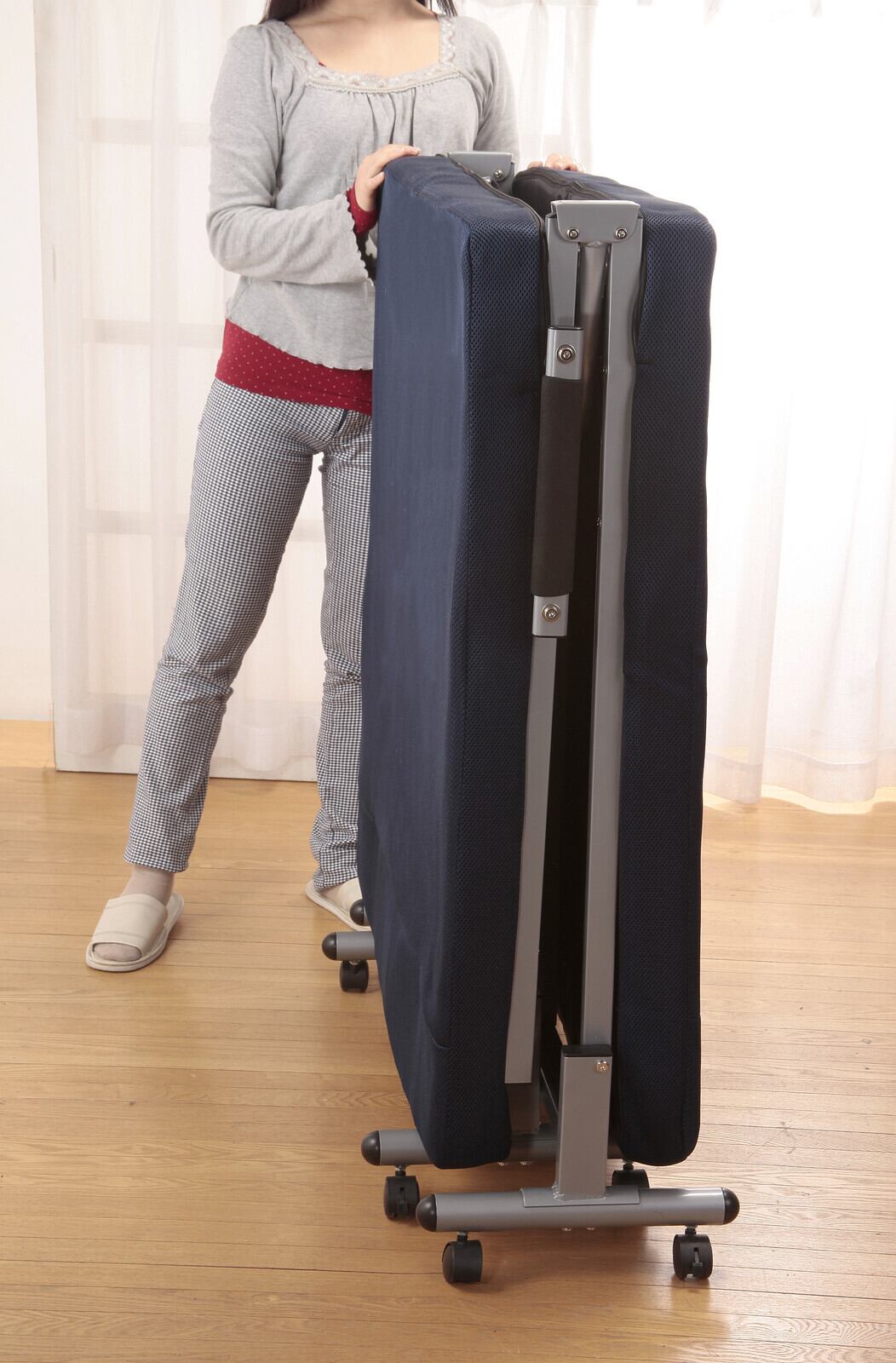 ●サイズ:使用時/約幅97×長さ200×高さ32cm(マット厚さ約8.5cm)、収納時/約幅97×奥行39×高さ110cm、マットサイズ:約幅90×長さ200cm