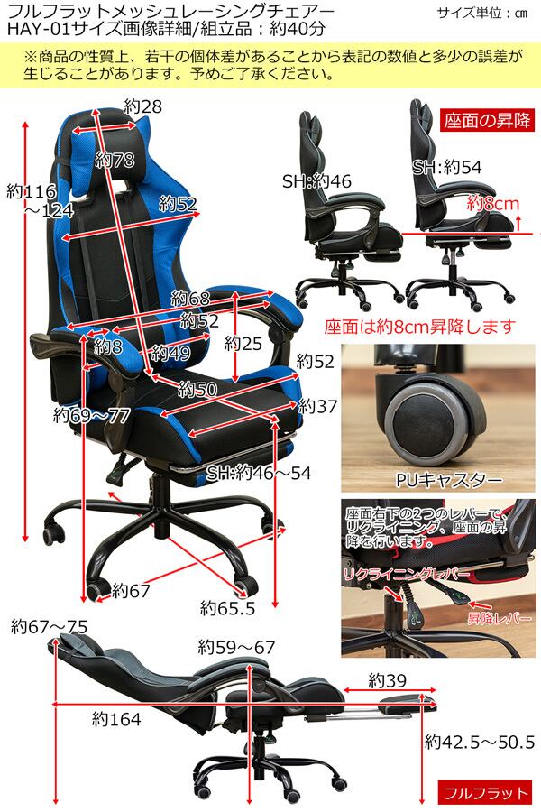 フルフラットメッシュレーシングチェア