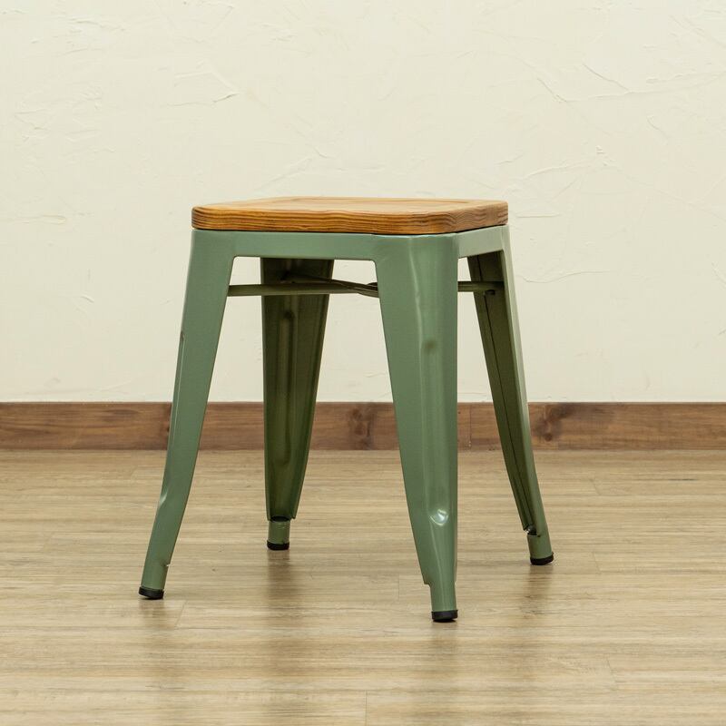 天然木の座面と重厚感のあるスチールを組み合わせたスツールです