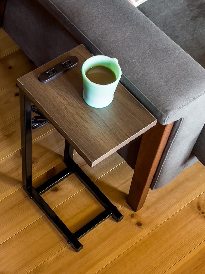ベッドやソファサイドで役立つ幅約18センチとスリムなサイドテーブルです