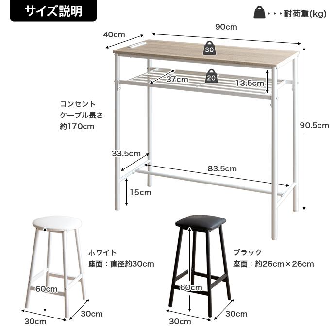 【耐荷重】天板:約30kg 、棚:約20kg、スツール:約120kg