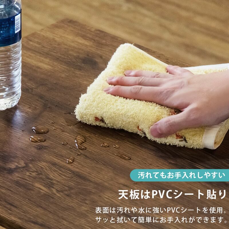 天板表面は汚れや水に強いPVCシート張りでサッと拭けてお手入れが簡単です。