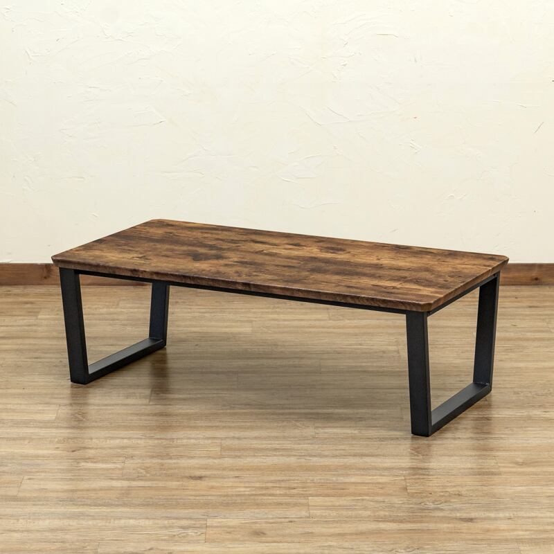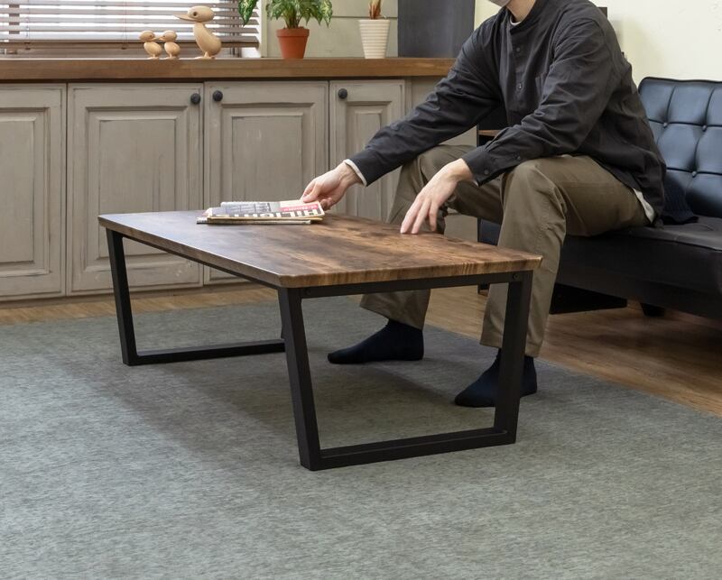 木目調天板+スチール脚のシックな風合いのテーブルです。