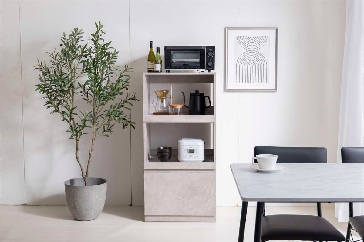 2つのスライドトレーでキッチン家電をスッキリ収納できる『Topu(トープ)』レンジ台