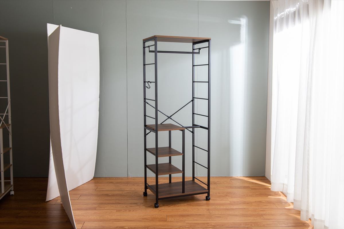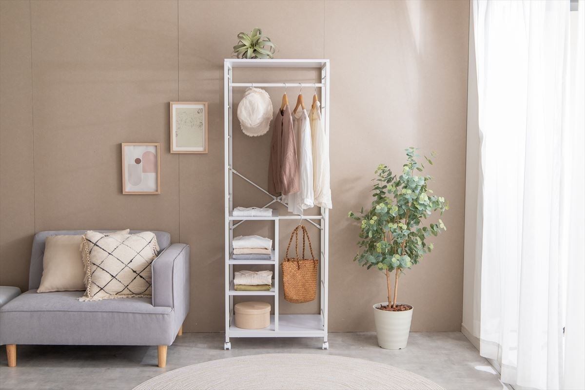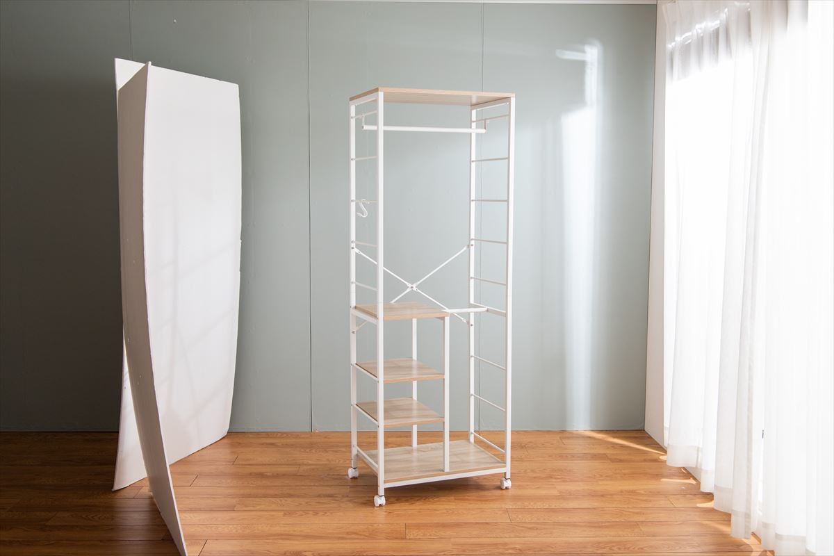 1台にまとめて収納できる多機能な『Tito(ティート)』シリーズの棚付きハンガーラック