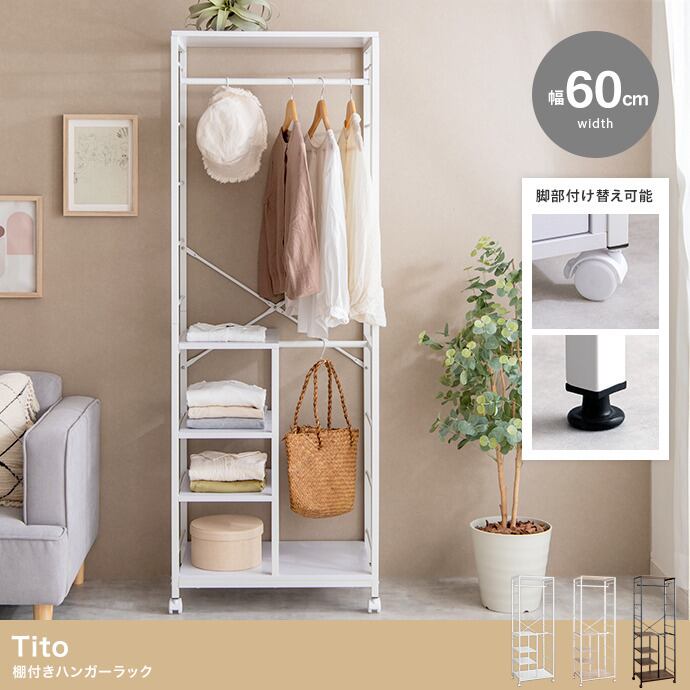 【幅60cm】Tito 棚付きハンガーラック