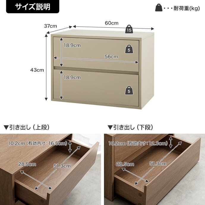 【耐荷重】天板:約15kg 、引き出し:各約5kg