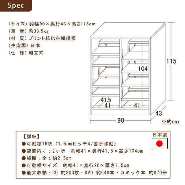 国産ダブル棚板本棚W90