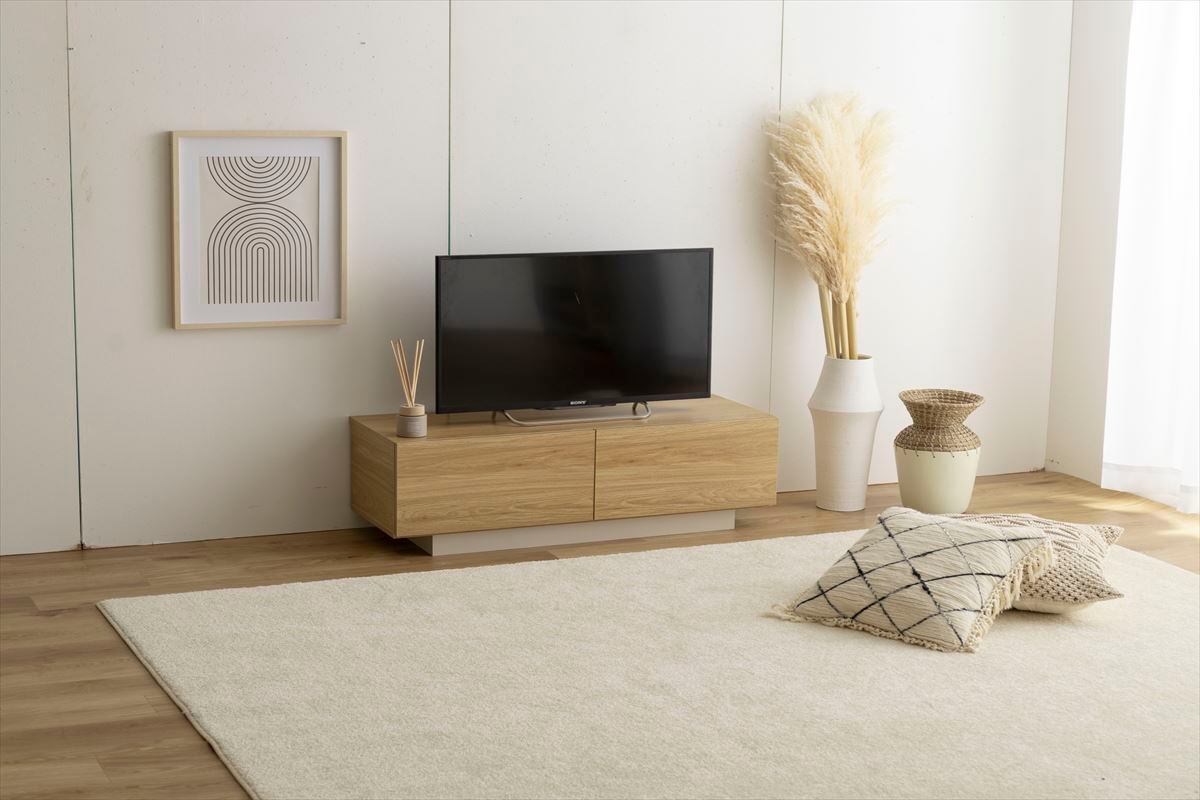 バイカラーの配色が特徴的な『Pom』引き出し付きテレビ台