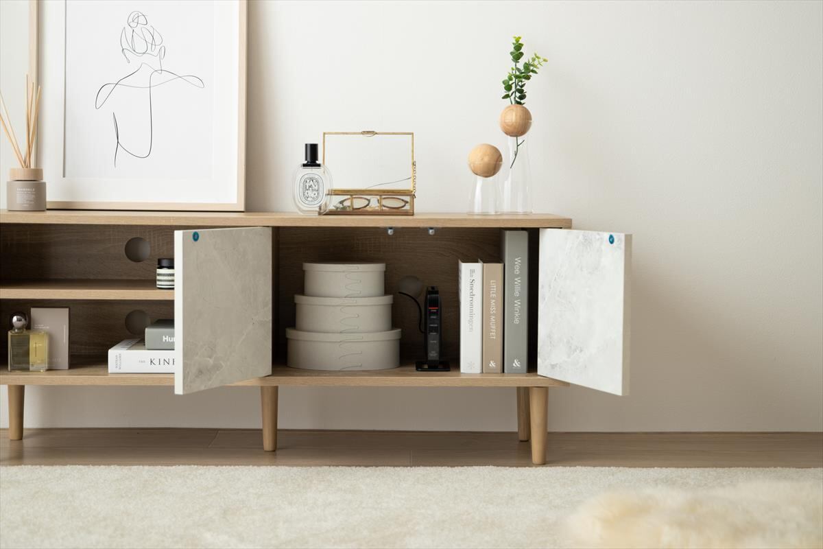 美しい木目×ストーン柄のバイカラーデザインがおしゃれな『Tas(タシュ)』シリーズのテレビボード